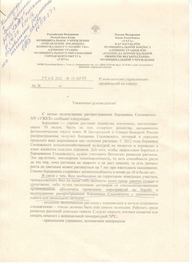 Мероприятия по борьбе и недопущению распространения борщевика Сосновского!!!