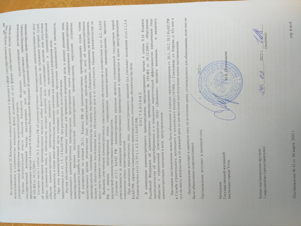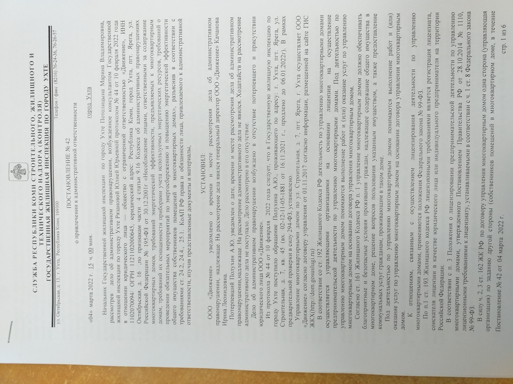 | Наименование контролирующего органа | ГЖИ г. Ухта |