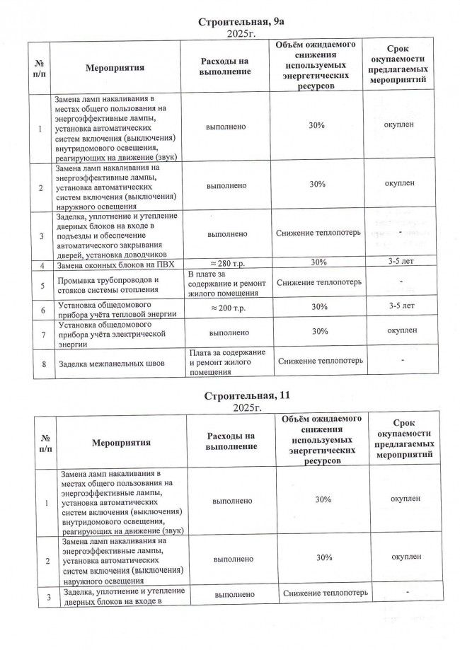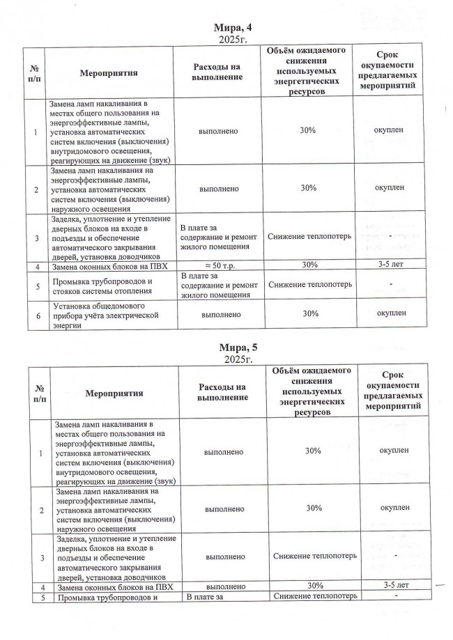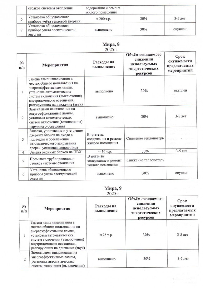Мероприятия по энергосбережению 2025г.